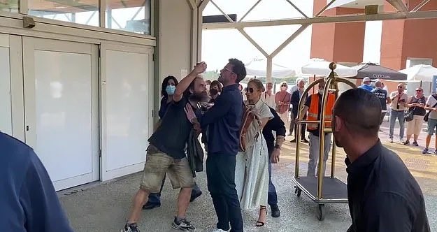 Los actores Ben Affleck y Jennifer Lopez fueron interceptados por un fan de manera agresiva mientras caminaban en el aeropuerto de Venecia.